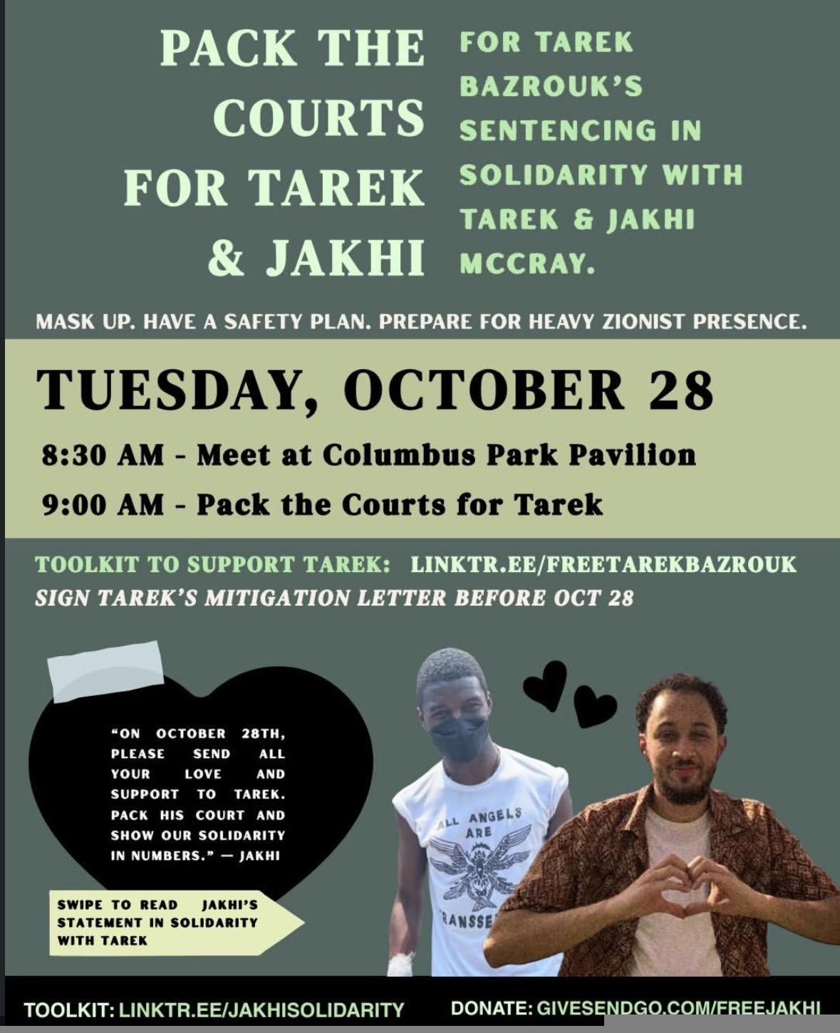 Pack the courts for Tarek Bazrouk’s sentencing in solidarity with Tarek and Jakhi McCray.